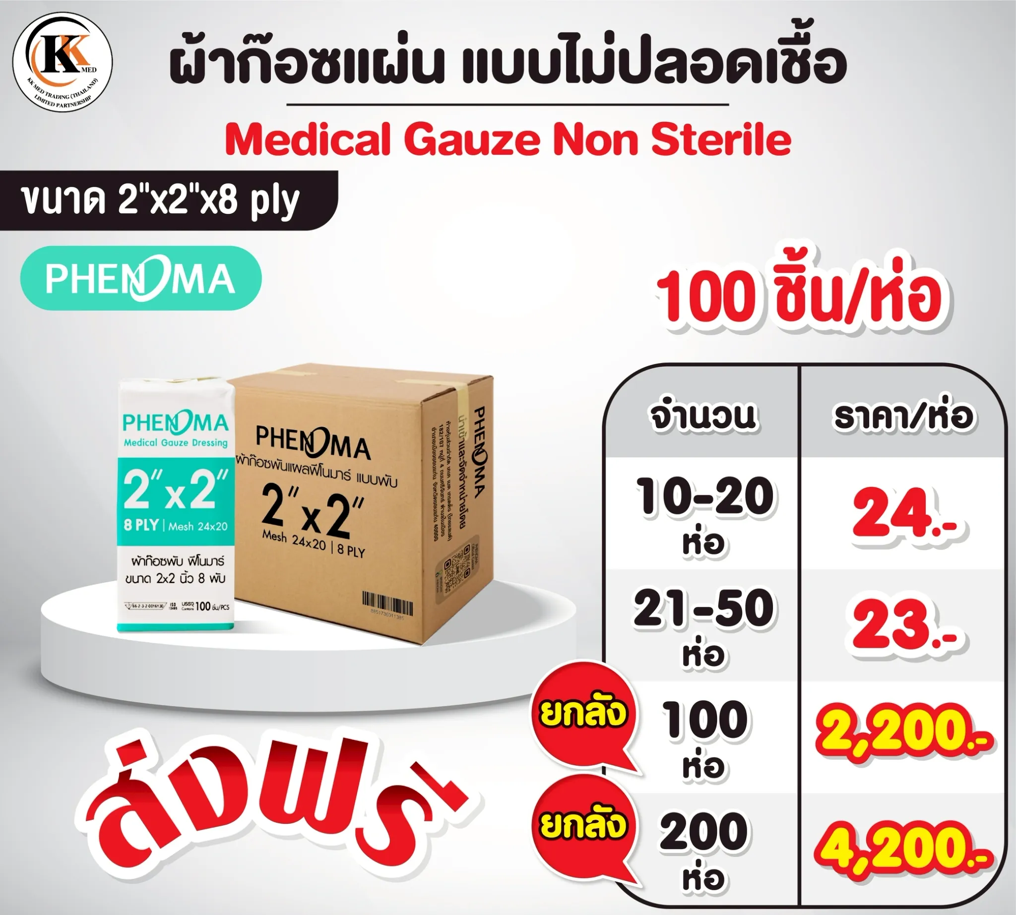 ผ้าก๊อซพับฟีโนมาร์ (Non-Sterile) ผลิตจากฝ้ายแท้ Natural Cotton 100%