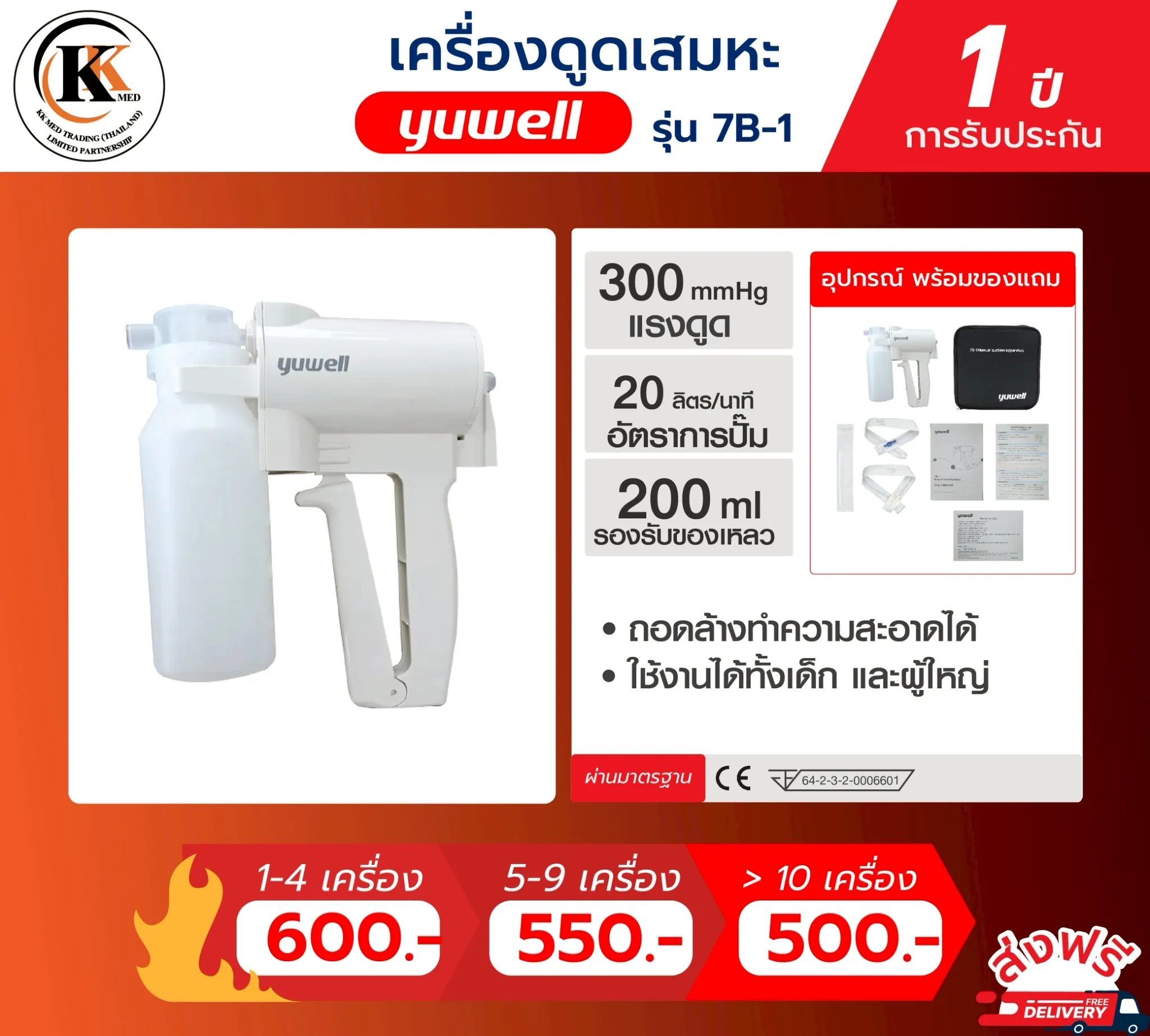 เครื่องดูดเสมหะพกพา แบบมือบีบ Yuwell รุ่น 7B-1 Manual Suction