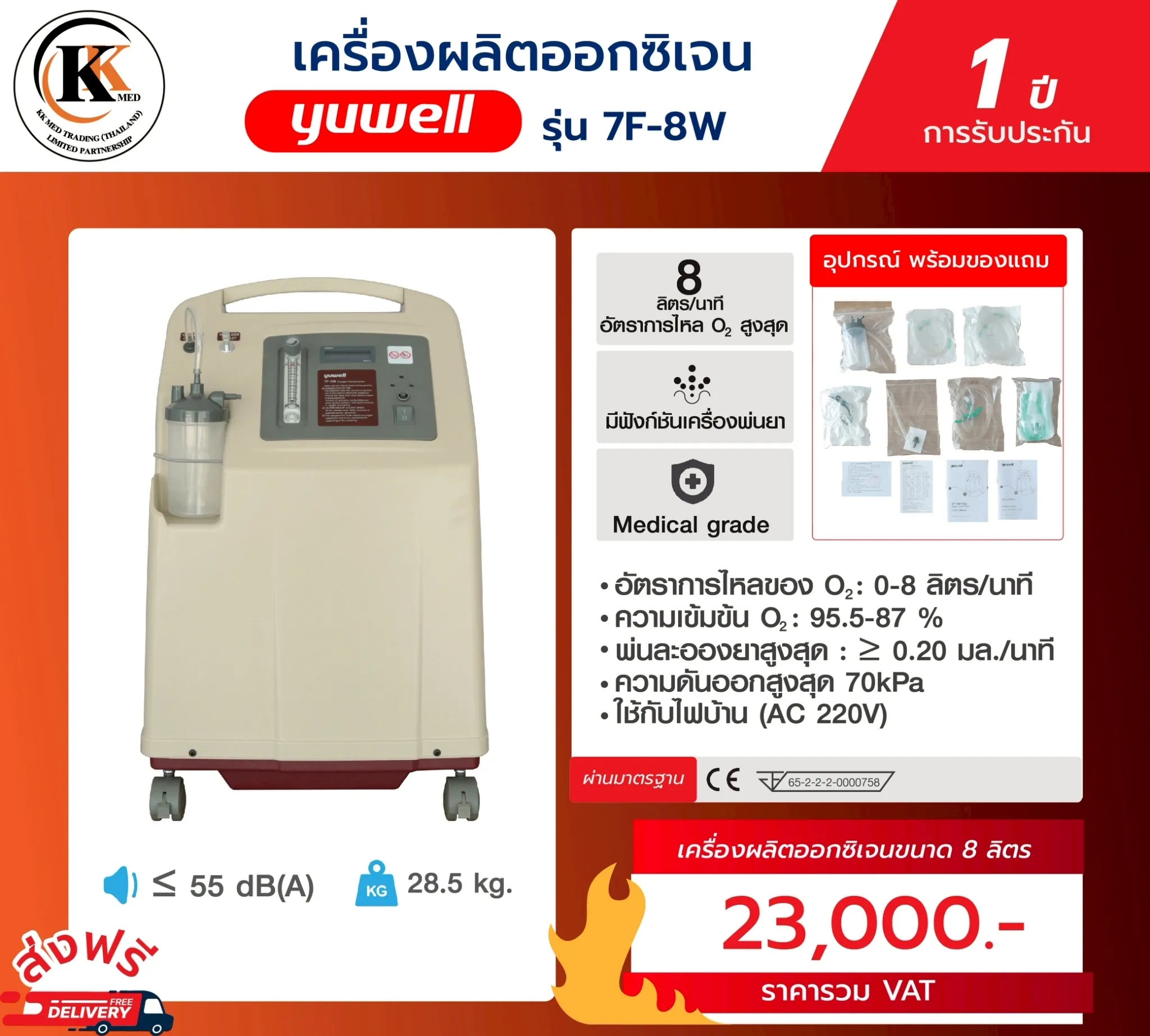 🔵เครื่องผลิตออกซิเจนขนาด 8 ลิตร Yuwell รุ่น 7F – 8W + เซ็ต 🔵⚡รับประกัน 1 ปี⚡