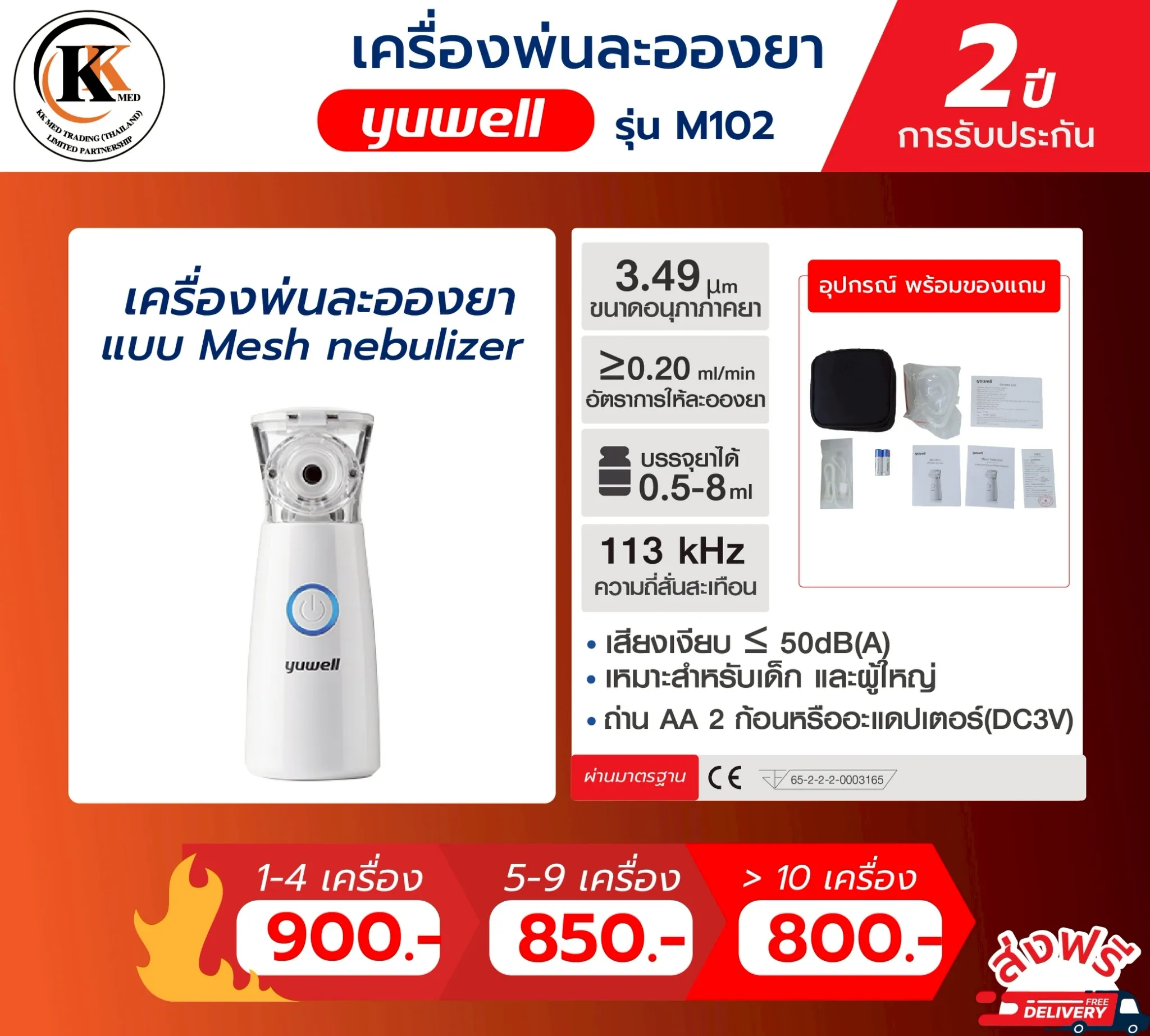 เครื่องพ่นยา รับประกัน 2 ปี เครื่องพ่นละอองยา แบบพกพา ยี่ห้อ Yuwell รุ่น M102 (Mesh Nebulizer) อุปกรณ์ครบชุด พร้อมใช้งาน