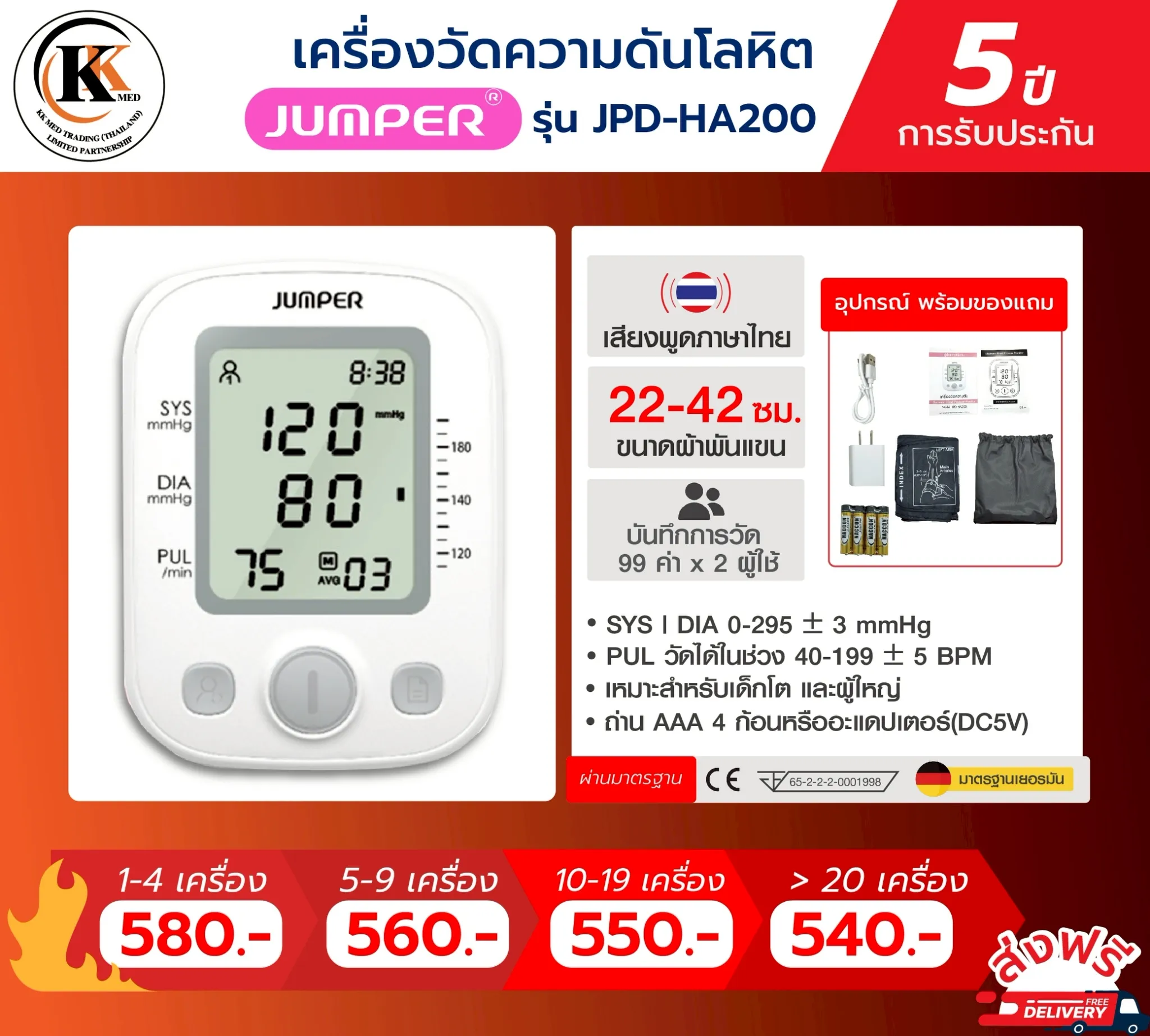เครื่องวัดความดัน JUMPER พูดไทย มาตรฐานเยอรมัน ประกันศูนย์ 5 ปี รุ่น JPD-HA200 BP Monitor Thai voice Germany CE 5 years