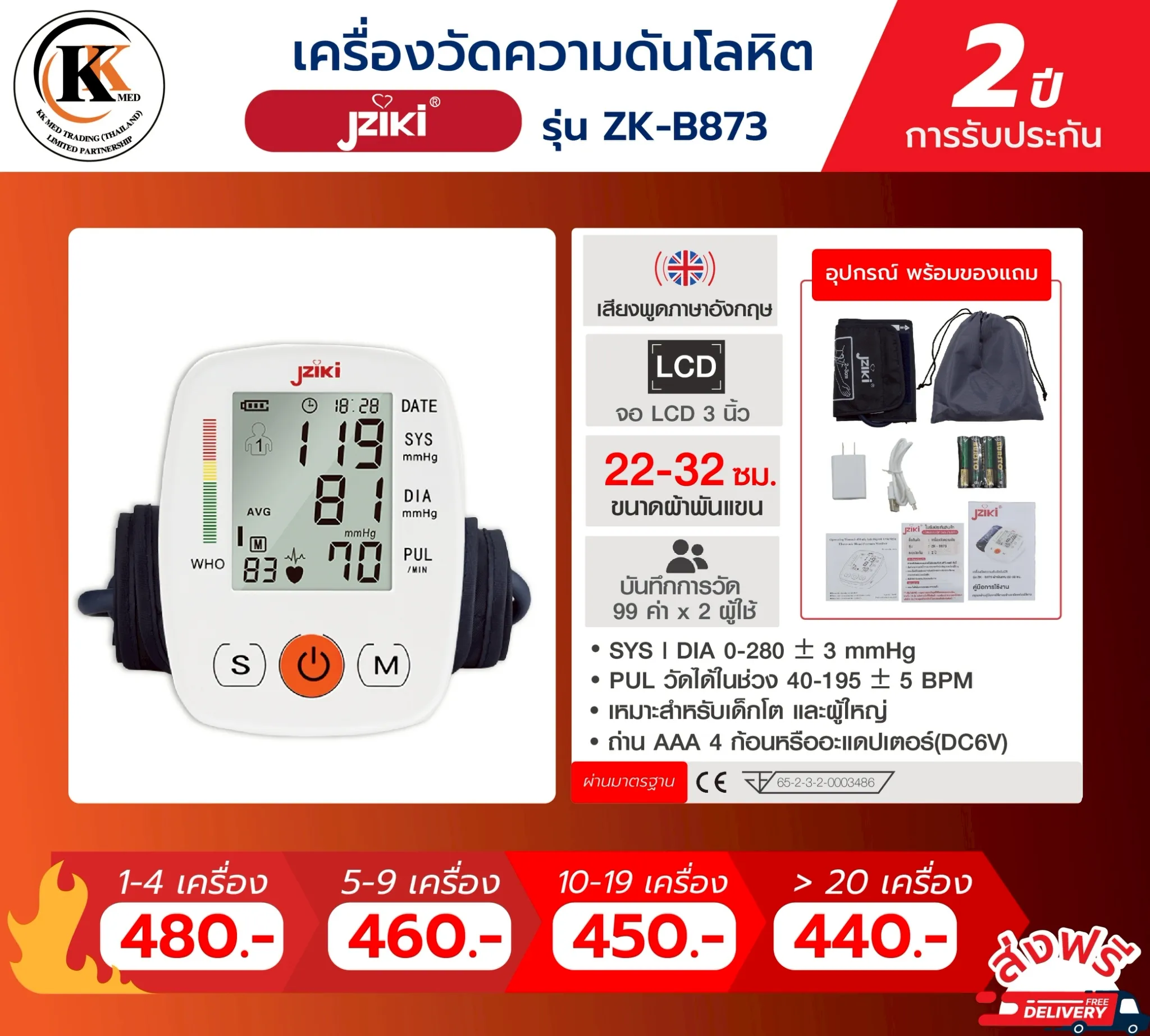 🔶 รุ่น ZK-B873 แบบต้นเเขน 🔶 ***มีเสียงภาษาอังกฤษ เเจ้งในแต่ละขั้นตอน****