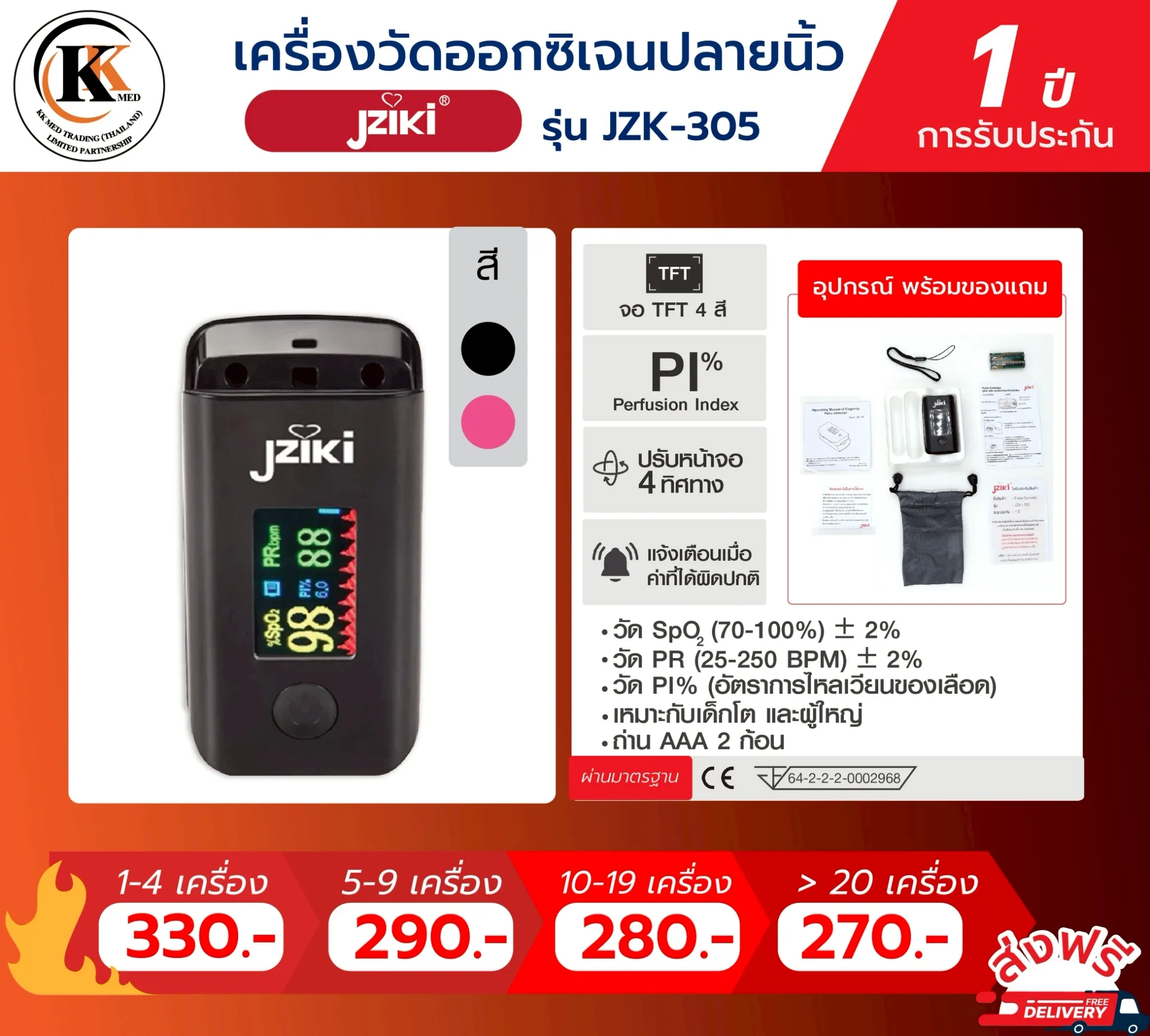 🔥🔥🔥🔥สินค้ารุ่นใหม่ล่าสุด JZK-305 ที่พัฒนามาจากรุ่น JZK-301 Sensor ไวกว่า ประมวลผลดีกว่า !!!! ด้วยระบบ Built-In Low-Power Chips ที่ใช้พลังงานประมวลผลน้อยกว่า และใช้พลังงานได้คุ้มค่ากว่าระบบเก่า เพิ่มระยะเวลาการใช้งานจากพลังแบตเตอรี่เท่าเดิม จากค่าย Jziki แบร์นชั้นนำมาตรฐานระดับพรีเมี่ยมทางเครื่องมืออิเล็คทรอนิคทางการแพทย์ที่ยอดขายสูงสุดในประเทศ🔥🔥🔥