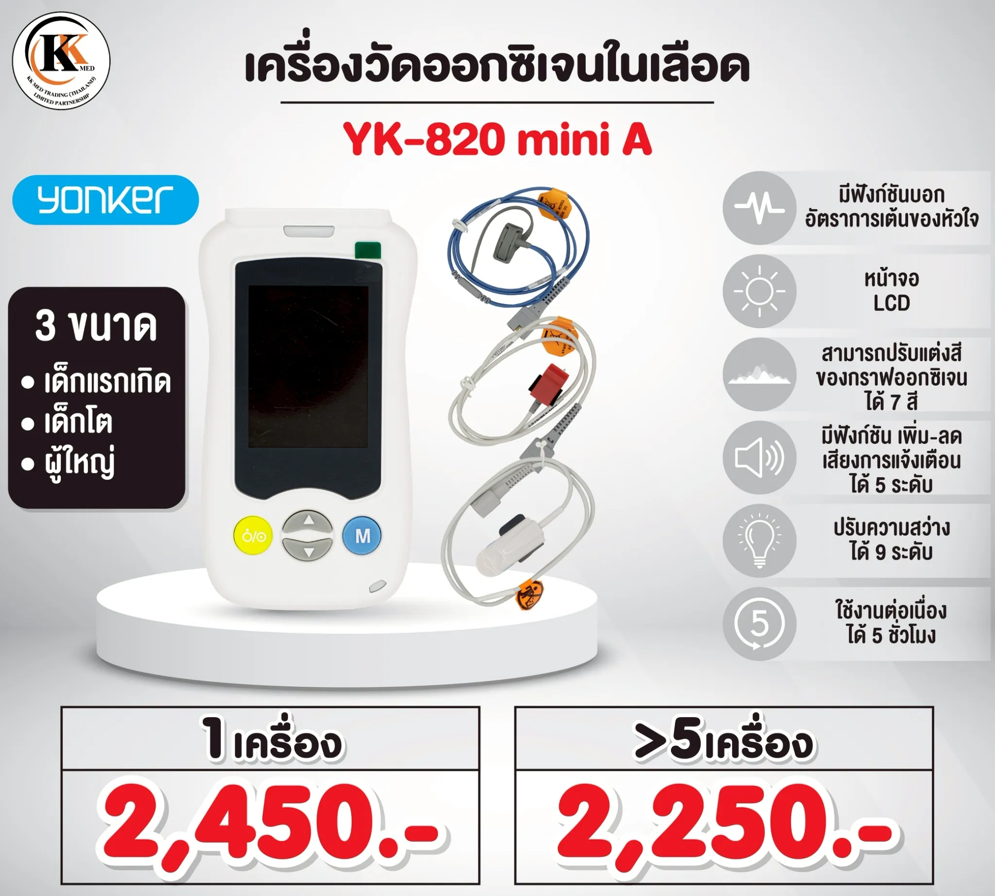 เครื่องวัดออกซิเจนในเลือด Handheld Pulse Oximet ยี่ห้อ YONKER รุ่น YK-820miniA