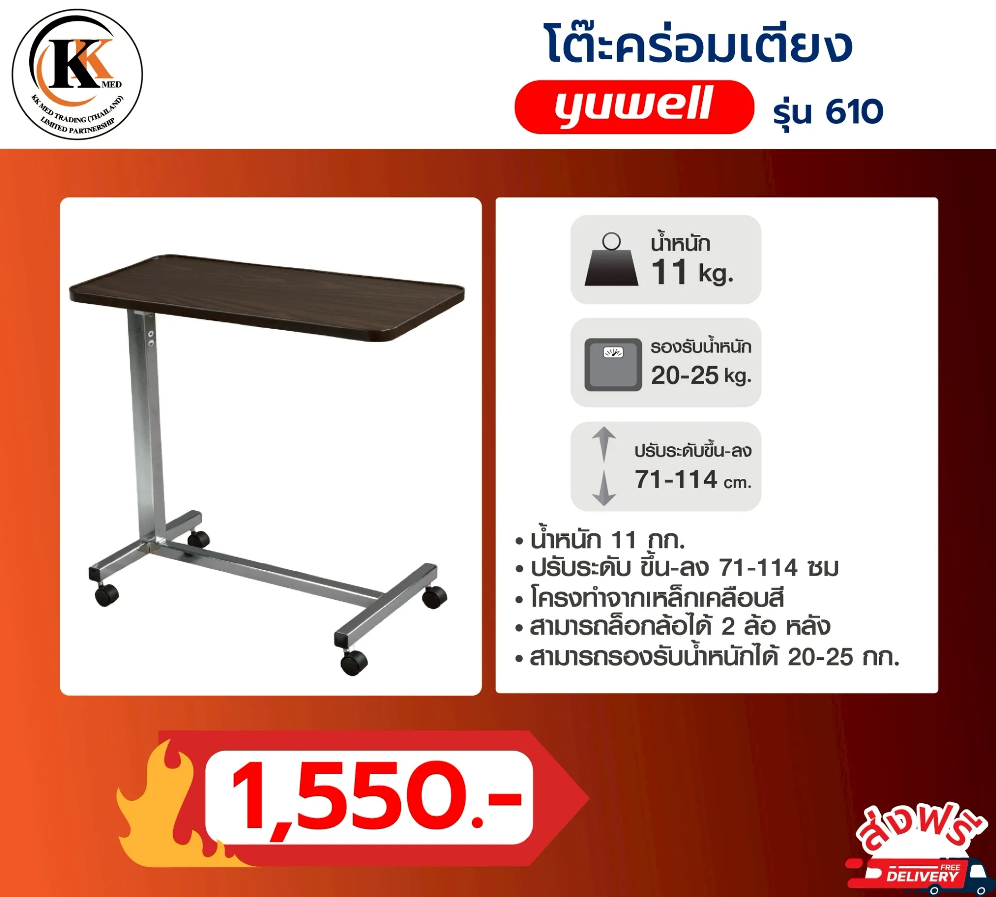 – ขนาดโต๊ะคร่อมเตียง กว้าง x ยาว x สูง = 38 x 76 x 71-114 ซม.