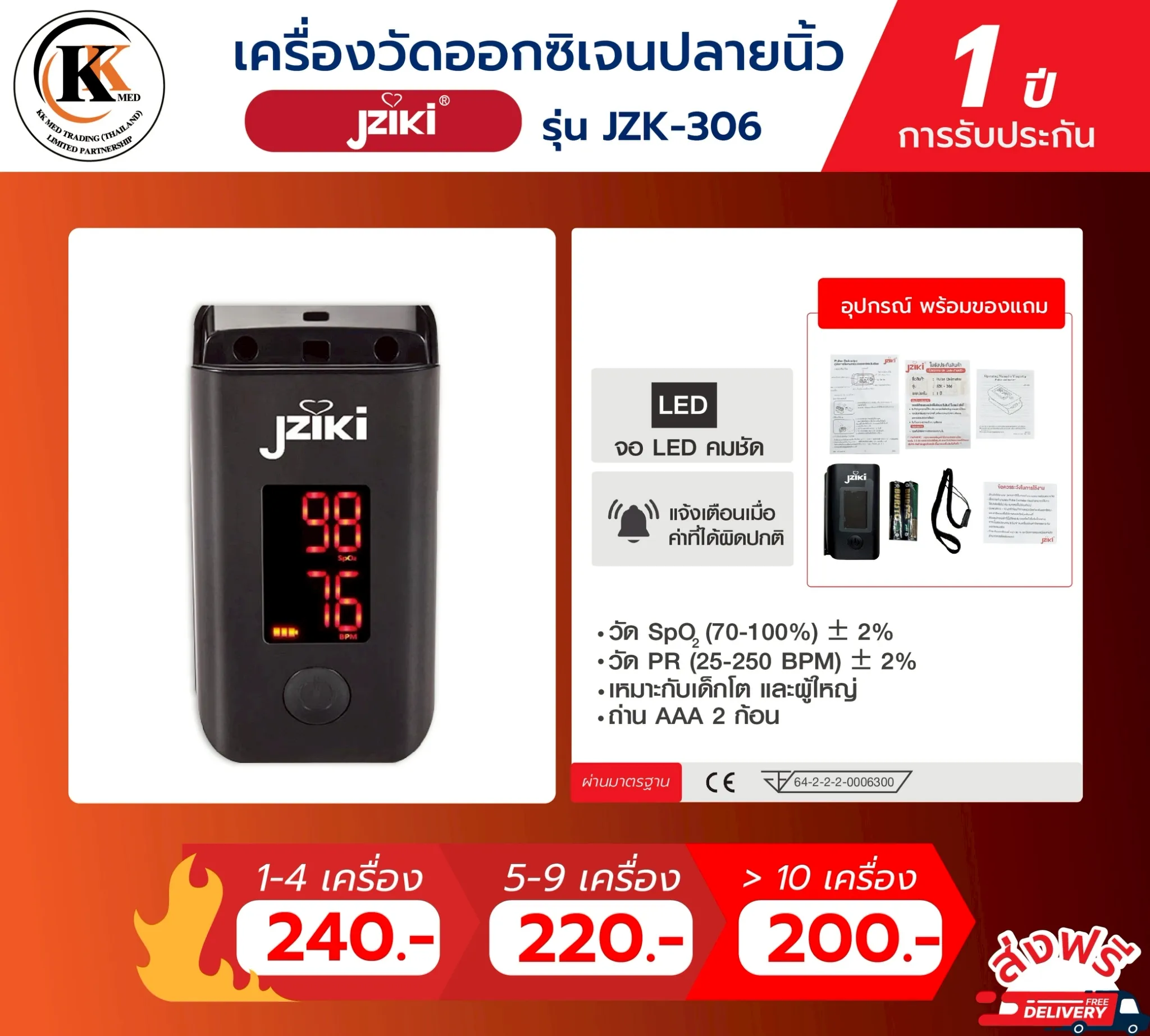 ขายส่ง ประกัน1ปี อย.ไทย เครื่องวัดออกซิเจนในเลือด Pulse Oximeter JZK-306 วัดออกซิเจนปลายนิ้ว Fingertip
